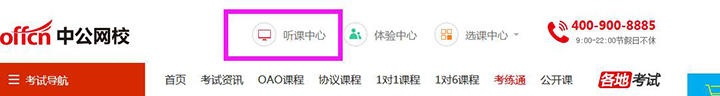 ① 打開中公網(wǎng)校首頁www.hiway80.com ,點擊中間顯示的"聽課中心",如圖: