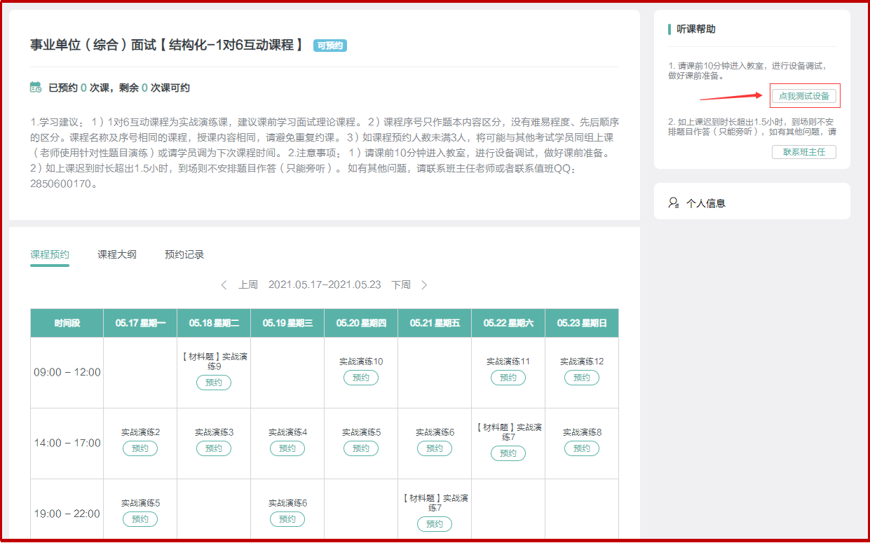 2.注意課程預(yù)約中說明的重要提示