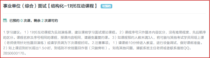 示例:以下以2021事業(yè)單位輔導(dǎo)課程【總】 > 面試課程 > 【結(jié)構(gòu)化】-1對(duì)6自主預(yù)約互動(dòng)互動(dòng)課程為例: