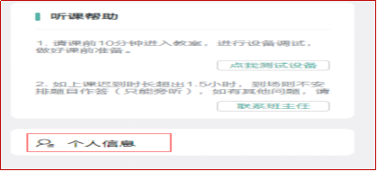 閱讀說(shuō)明后,點(diǎn)擊右上角的個(gè)人信息---進(jìn)行完善信息,請(qǐng)每位同學(xué)必須將個(gè)人信息填寫完整、真實(shí)、有效,以便能夠準(zhǔn)時(shí)接收到我們所發(fā)送的課程通知。