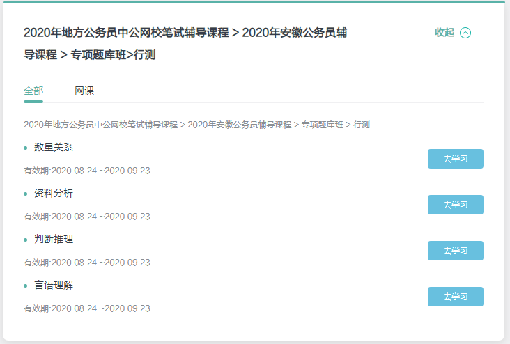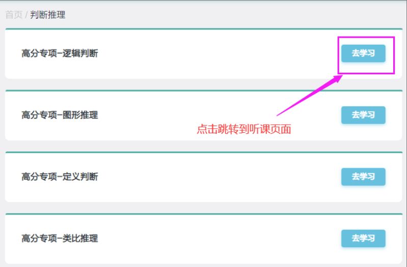 (3)按照目錄進(jìn)行選擇,點擊“去學(xué)習(xí)”,可進(jìn)入對應(yīng)該科目的聽課頁面。