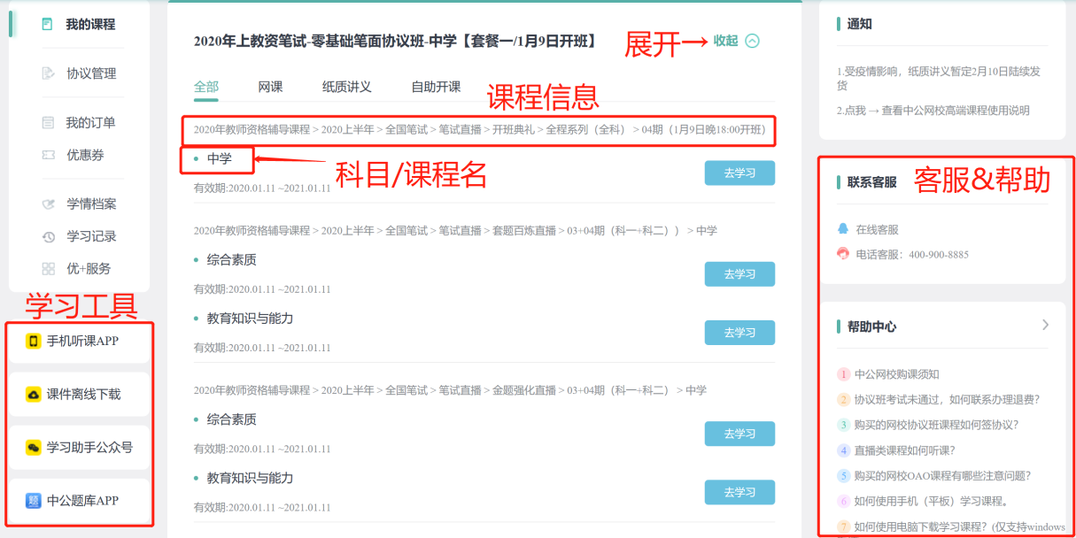 自助服務(wù):PC幫助中心、中公網(wǎng)校APP幫助指南