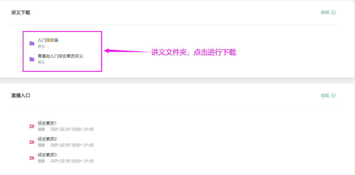 操作方法:進(jìn)入課程后展示【講義下載】的位置,點(diǎn)擊即可下載講義。