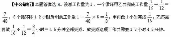 單獨(dú)完成某項(xiàng)工作,甲需要16小時(shí),乙需要12小時(shí),如果按照甲、乙、甲、乙、……的順序輪流工作,每次1小時(shí),那么完成這項(xiàng)工作需要多長(zhǎng)時(shí)間?