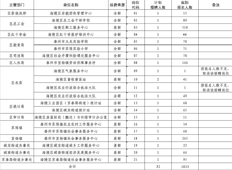 原標題:泰州市海陵區(qū)2015年事業(yè)單位公開招聘工作人員報名情況