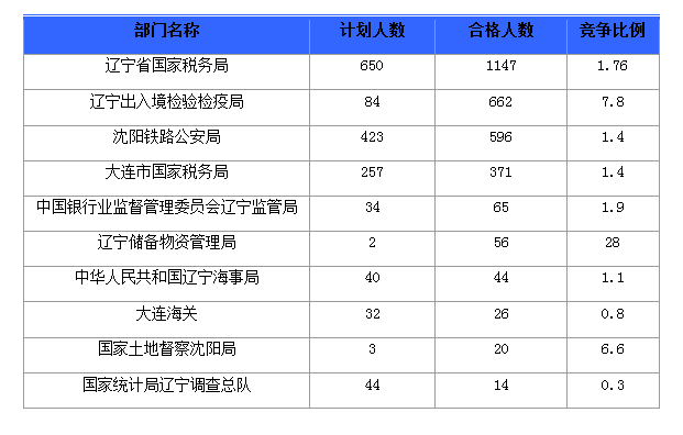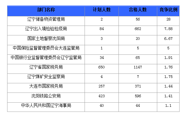 【截止16日16時】2016國考遼寧審核人數(shù)達3039人,出入境檢驗檢疫局最受歡迎