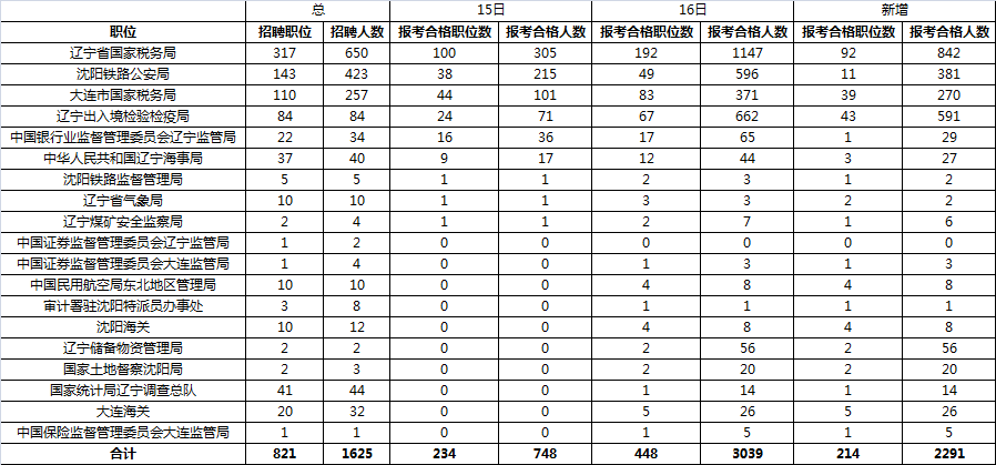 【截止16日16時(shí)】2016國(guó)考遼寧審核人數(shù)達(dá)3039人,出入境檢驗(yàn)檢疫局最受歡迎