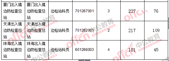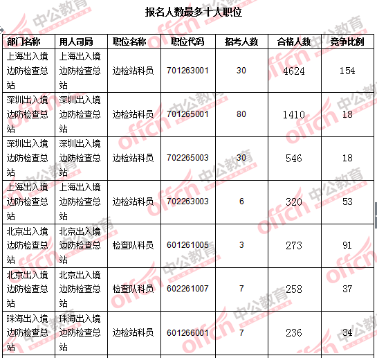 招錄人數(shù)較多的出入境邊防檢查系統(tǒng)經(jīng)過9天的報(bào)名后,目前通過審核人數(shù)為10646,平均競(jìng)爭(zhēng)比高達(dá)40:1,略高于總體競(jìng)爭(zhēng)比,所招錄職位“脫零”,所有職位均有考生“垂青”,國(guó)家對(duì)基層職位的政策傾斜在報(bào)考中明顯地體現(xiàn)出來。