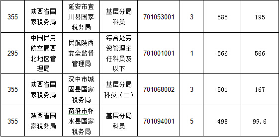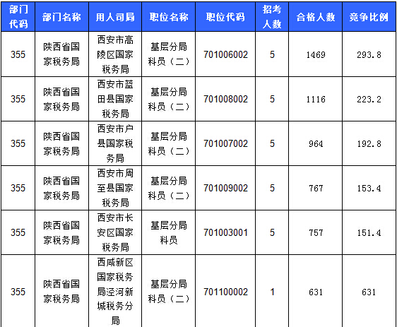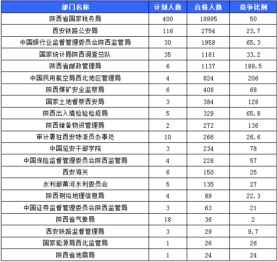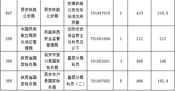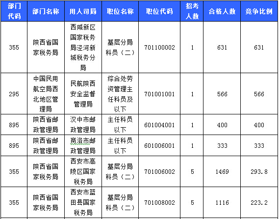 報名人數(shù)較多的職位主要集中在陜西省國家稅務(wù)局、中國民用航空局西北地區(qū)管理局、西安鐵路公安局等部門,具體信息如下: