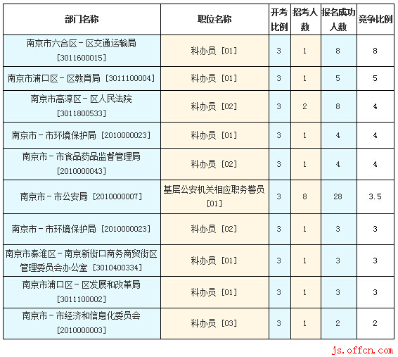 南京市報名競爭最激烈的十大職位