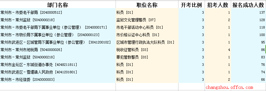 常州省考報(bào)名競(jìng)爭(zhēng)最激烈的十大職位