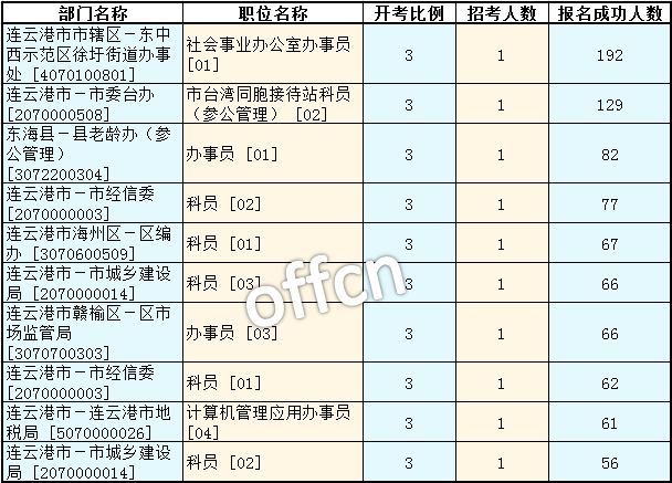 連云港公務(wù)員考試報名人數(shù)最多的十大職位