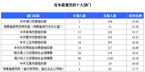 為幫助廣大考生更清晰的了解今日報(bào)名情況,中公網(wǎng)校整理了報(bào)名人數(shù)前十位的部門以及競爭比例最激烈的十大部門,供廣大考生參考: