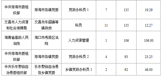 截止16日9時(shí),招錄比例的職位為海南省高級人民法院??谑行阌^(qū)法院人力資源管理一職,招錄1人,截止16日9時(shí)通過人數(shù)為106人。