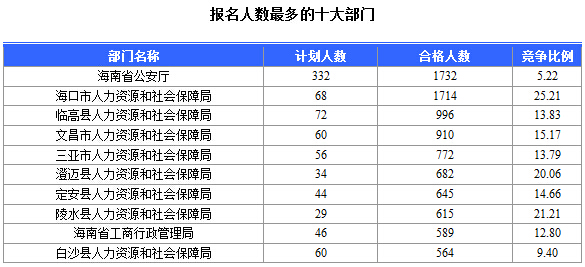 截至16日16時,報名人數前三位的部門依次是:海南省公安廳、??谑腥肆Y源和社會局、臨高縣人力資源和社會局,三部門報名總人數達4442人,占報名總人數的25%。