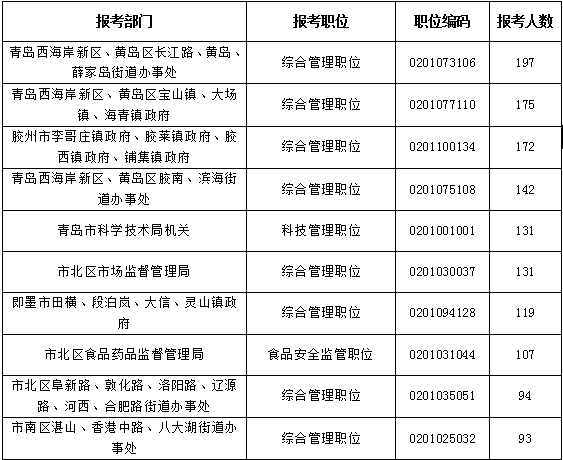 報(bào)考人數(shù)前十職位:
