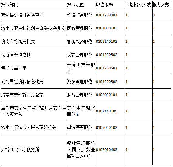 報考人數(shù)后十名的職位