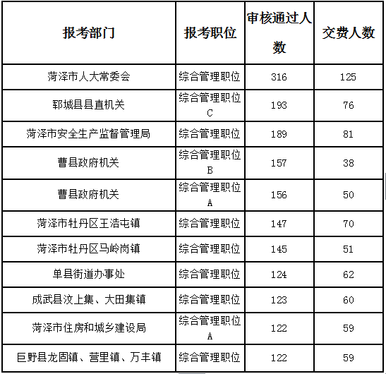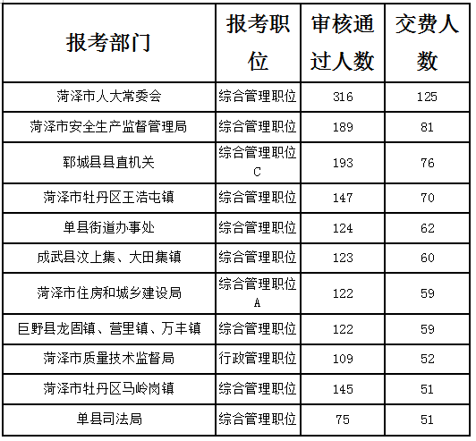 下面是今日報名審核通過最多和繳費人數(shù)最多的前十個職位,供各位考生參考。同時仍有15個職位無人通過審核,大家可以理性選擇報考。
