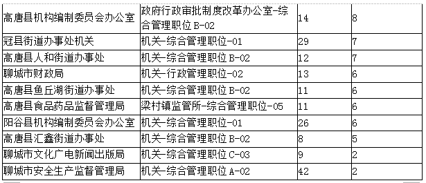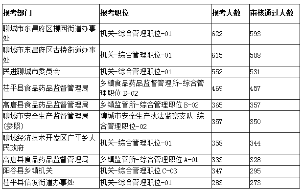 報名審核通過人數(shù)的后十個職位: