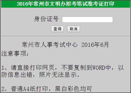 2016江蘇常州市文明辦招考筆試準(zhǔn)考證打印入口