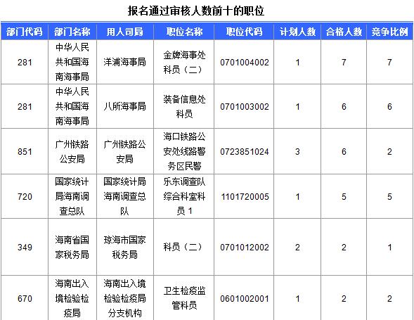 截止到15日16時,僅有17個職位破0,仍有173個職位無人問津,其中報名人數(shù)最多的職位為:中華人民共和國海南海事局,金 牌海事處科員(二),共報名7人,競爭比例為7:1。這僅僅是第一天白天的報名數(shù)據(jù)!