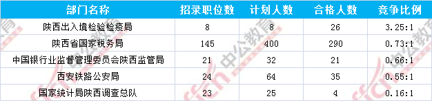 為幫助廣大考生更清晰的了解今日?qǐng)?bào)名情況,陜西中公網(wǎng)校整理了審核通過人數(shù)前幾位的部門以及競爭比例最激烈的幾大部門,供廣大考生參考: