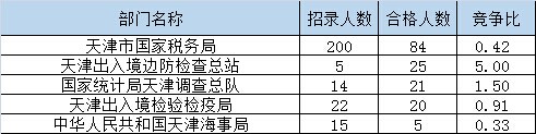 為幫助廣大考生更清晰的了解今日?qǐng)?bào)名情況,天津中公網(wǎng)校整理了審核通過人數(shù)前五位的部門以及競(jìng)爭(zhēng)比例最激烈的五大部門,供廣大考生參考: