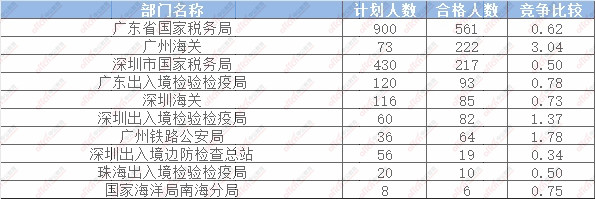 為幫助廣大考生更清晰的了解今日?qǐng)?bào)名情況,廣東中公網(wǎng)校整理了審核通過(guò)人數(shù)前十位的部門(mén)以及競(jìng)爭(zhēng)比例最激烈的十大部門(mén),供廣大考生參考: