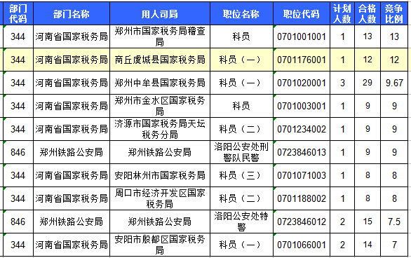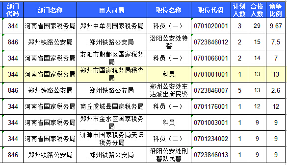 報(bào)名通過審核人數(shù)前十的職位主要集中在河南省國家稅務(wù)局、鄭州鐵路公安局等部門,具體信息如下: