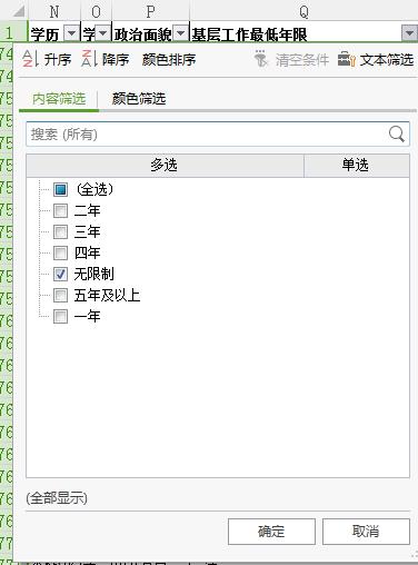 由于應(yīng)屆畢業(yè)生是國考大軍中“陣容龐大”的一個群體,因此首先將基層工作經(jīng)歷進行篩選是讓職位表快速“縮水”的有效途徑。應(yīng)屆畢業(yè)生可以通過篩選將基層工作經(jīng)歷要求為無限制的職位直接挑選出來,社會人員也可根據(jù)自身條件篩選對應(yīng)職位。