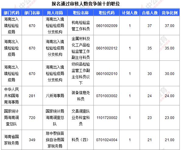 報(bào)名通過(guò)前十的職位具體信息如下: