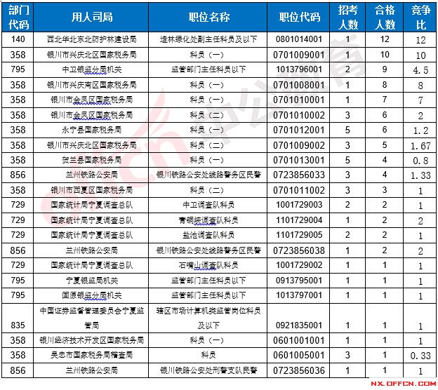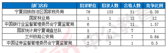 2017國(guó)考寧夏地區(qū)各部門(mén)報(bào)考情況