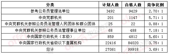 目前,報(bào)名人數(shù)最多的是中央國(guó)家行政機(jī)關(guān)省級(jí)以下直屬機(jī)構(gòu),合格人數(shù)已達(dá)84020人,這也與其龐大的招錄人數(shù)息息相關(guān),競(jìng)爭(zhēng)比的是中央黨群機(jī)關(guān)參照公務(wù)員法管理事業(yè)單位,僅招錄68人,目前已有488人報(bào)名,競(jìng)爭(zhēng)比為7.18:1,領(lǐng)先于其他系統(tǒng),此外,中央黨群機(jī)關(guān)競(jìng)爭(zhēng)比為5.71:1,根據(jù)歷年報(bào)名情況來(lái)看,也有潛力超越中央黨群機(jī)關(guān)參照公務(wù)員法管理事業(yè)單位。