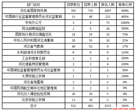 為幫助廣大考生更清晰的了解今日?qǐng)?bào)名情況,河北中公教育整理了各部門審核通過人數(shù)以及競(jìng)爭(zhēng)比例,供廣大考生參考: