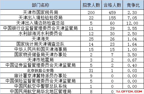 為幫助廣大考生更清晰的了解今日?qǐng)?bào)名情況,天津中公網(wǎng)校整理了審核通過人數(shù)前五位的部門以及競(jìng)爭(zhēng)比例最激烈的五大部門,供廣大考生參考: