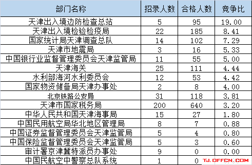 為幫助廣大考生更清晰的了解今日?qǐng)?bào)名情況,天津中公教育整理了審核通過人數(shù)前五位的部門以及競(jìng)爭(zhēng)比例最激烈的五大部門,供廣大考生參考: