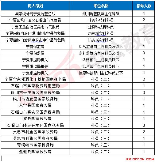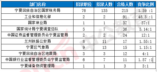 2017國(guó)考寧夏地區(qū)各部門(mén)報(bào)考情況