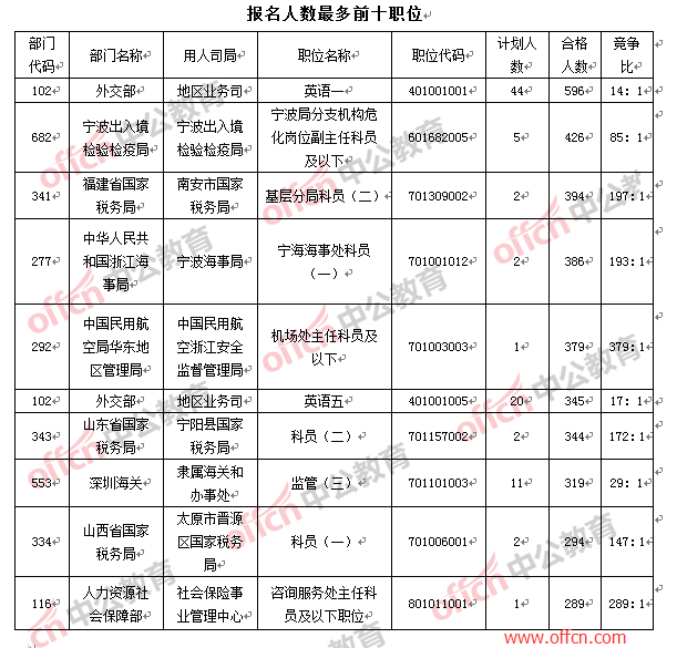 截至17日16時:2017國考報名外交部蟬聯“人氣”