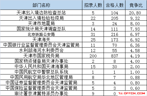 為幫助廣大考生更清晰的了解今日報名情況,天津中公網(wǎng)校整理了審核通過人數(shù)前五位的部門以及競爭比例最激烈的五大部門,供廣大考生參考: