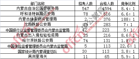 為幫助廣大考生更清晰的了解今日報名情況,內(nèi)蒙古中公網(wǎng)校整理了審核通過人數(shù)前十位的部門,供廣大考生參考:
