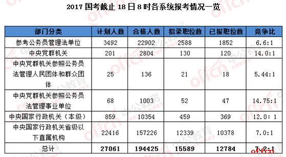 2017國(guó)考截止18日8時(shí)各系統(tǒng)報(bào)考情況一覽