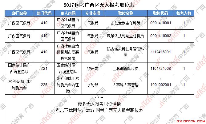 點擊下載:18日16時2017國考無人報考職位(廣西區(qū))