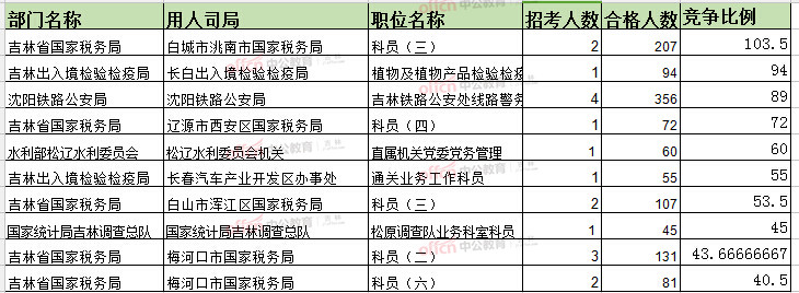 報(bào)名通過(guò)審核人數(shù)前十的職位主要集中在吉林省國(guó)稅局和國(guó)家統(tǒng)計(jì)局吉林調(diào)查總隊(duì),具體信息如下: