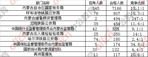 為幫助廣大考生更清晰的了解今日報名情況,內(nèi)蒙古中公網(wǎng)校整理了審核通過人數(shù)前十位的部門,供廣大考生參考: