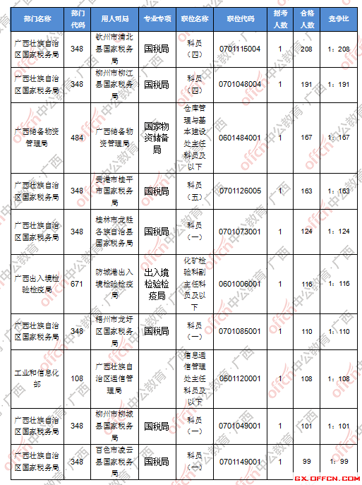 報(bào)名競(jìng)爭(zhēng)最激烈的前十的職位