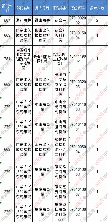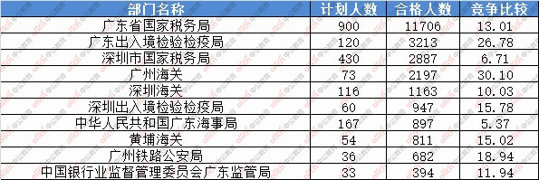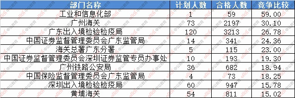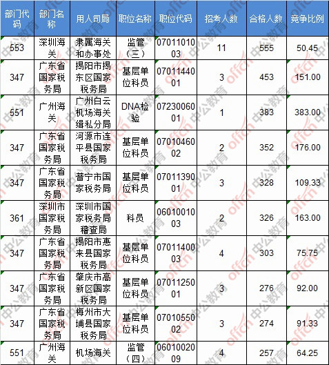 報(bào)名通過(guò)審核人數(shù)前十的職位主要集中在深圳海關(guān)、廣東省國(guó)家稅務(wù)局、廣州海關(guān),具體信息如下:
