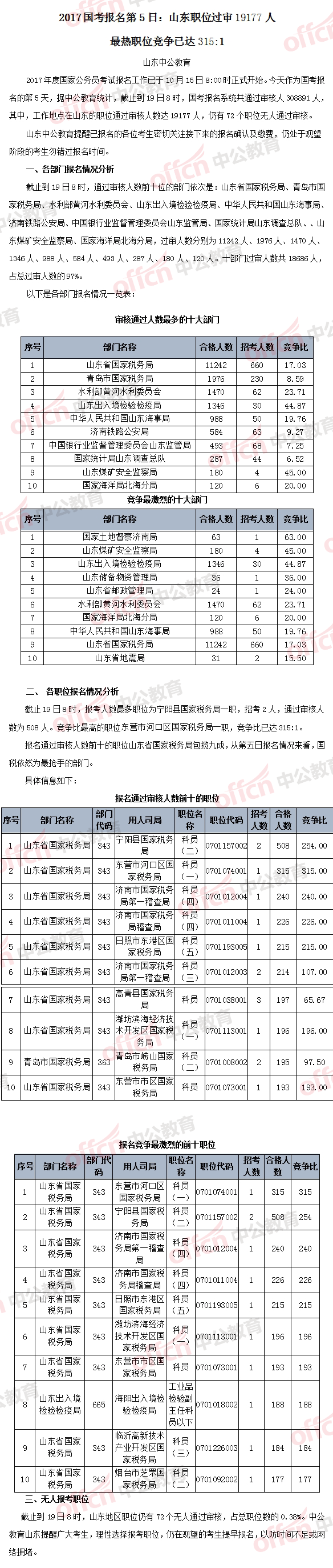 【截至19日8時(shí)】2017國(guó)考報(bào)名山東職位過(guò)審19177人 最熱職位競(jìng)爭(zhēng)已達(dá)315:1