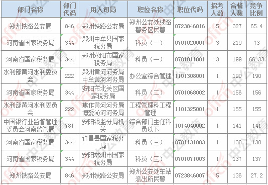 報(bào)名通過審核人數(shù)排名前列的職位主要集中在鄭州鐵路公安局、河南省國(guó)家稅務(wù)局,水利部黃河水利委員會(huì),具體信息如下: