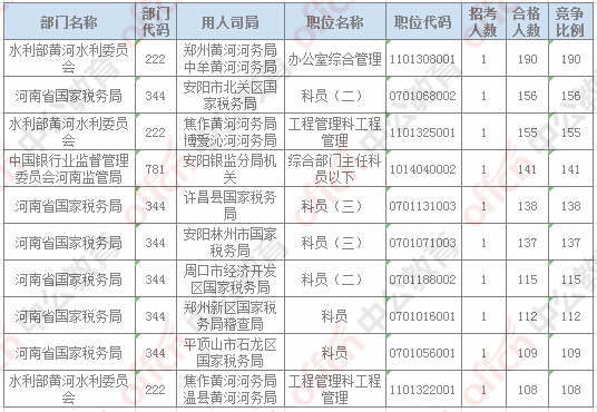截止19日8時(shí),招錄比例的職位為鄭州黃河河務(wù)局中牟黃河河務(wù)局辦公室綜合管理一職,招錄1人,截止19日8時(shí)通過人數(shù)為190人。
