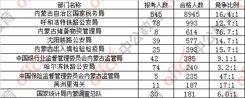 為幫助廣大考生更清晰的了解今日報名情況,內(nèi)蒙古中公網(wǎng)校整理了審核通過人數(shù)前十位的部門,供廣大考生參考: